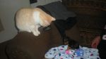 Aw its good to see your kid again!  That puppy is sooo cute!!!! We have a jack russell terrier...as much as shes a good dog but my daughter begs for a LITTLE dog, smaller than a dang jack russell terrier!  She wants to carry it around and stuff.  Too cute!!