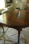 we found an antique table and chairs on CL for FREE!! Don refinished the table and it turned out so good. we are going to paint the chairs ivory, however.